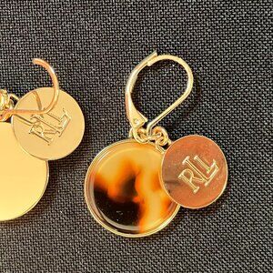 Lauren by Ralph Lauren Tortoise Round with Logo Charm Drop Earrings