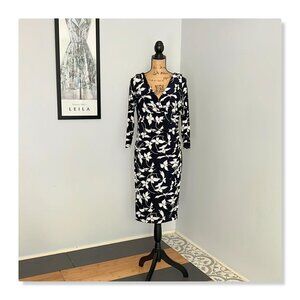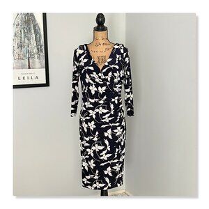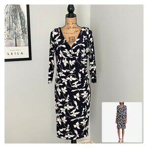 Lauren by Ralph Lauren Women's Floral Faux Wrap Side Ruching Jersey Dress Sz 10
