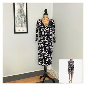 Lauren by Ralph Lauren Women's Floral Faux Wrap Side Ruching Jersey Dress Sz 10. EUC, no damage. Measurements provided in photos.