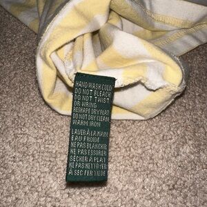 Stylish striped shirt by Ralph Lauren. Features yellow and white stripes with unique logo and navy cuffing