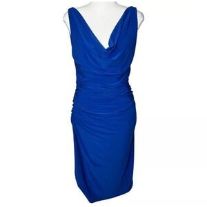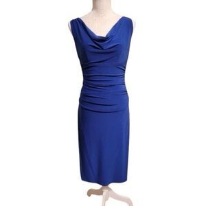 ✨Lauren by Ralph Lauren Cobalt Blue Draped Neck Side Ruched Sz 6 Dress✨