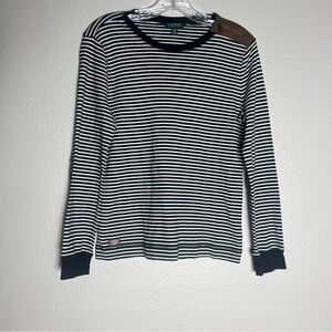 Lauren ralph lauren L Black White Stripe Faux suede patch elbow zip shoulder