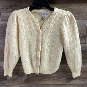 Lauren Cole Petites Lambswool,Angora,Nylon Ladies Vintage Sweater Cardigan, Off White Cream Color, Small Petite