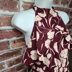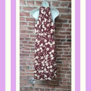Keywords/Tags: Lauren Conrad Runway dress, women’s size 4 floral dress, halter neck maroon midi, coquette romantic dress, quiet luxury evening wear, Lauren Conrad chic