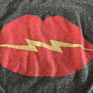 Lauren Moshi Women’s Gray Sweatshirt with Red and Gold Lip Design - Size XS. Stylish gray sweater featuring a bold red lip design with a striking gold accent. Perfect for adding a pop of color to your wardrobe. This material pils so it’s the look of the sweatshirt. Pit to pit 19” and shoulder to hem 21”.