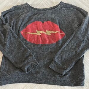 Lauren Moshi Women’s Gray Sweatshirt with Red and Gold Lip Design - Size XS