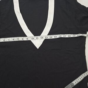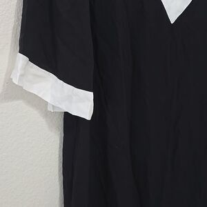 NWT! Stylish black dress with white trim. Features a deep V-neck and three-quarter sleeves. PLEASE REFER TO PHOTOS FOR MORE DETAILS AND MEASUREMENTS. SMOKE-FREE HOME.