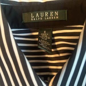 Lauren Ralph Lauren Black/White stripe button-down peplum shirt, size 6 (100% Cotton)