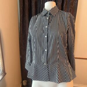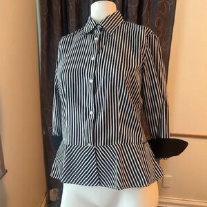 Lauren Ralph Lauren Black/White stripe button-down peplum shirt, size 6