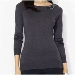 ✨Lauren Ralph Lauren Buckle Boatneck Grey Sz Large Sweater✨
