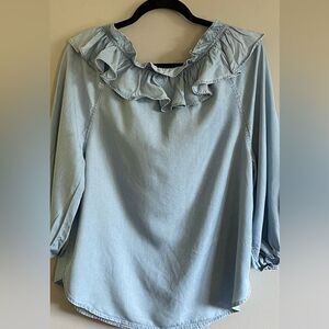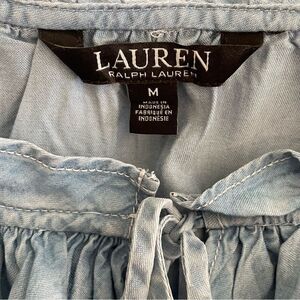 Lauren Ralph Lauren Chambray Ruffle Neck Boho Blouse Size Medium