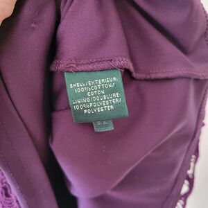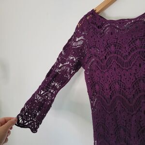 Lauren Ralph Lauren Dress Deep Purple Lace Overlay 3/4 Sleeves XS