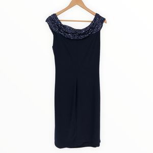 Lauren Ralph Lauren Evening Navy Sequin Trim Stretch Jersey Dress size 14