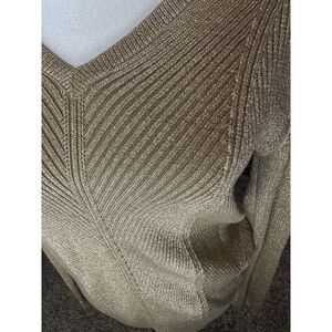 Lauren Ralph Lauren Gold Ribbed V-Neck Knit Sweater Size XL