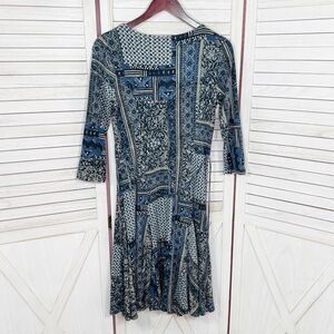 Lauren Ralph Lauren Printed Patchwork Knit Fit Flare Dress Blue Small