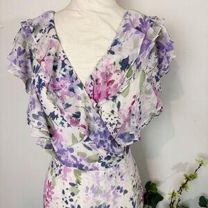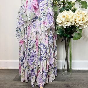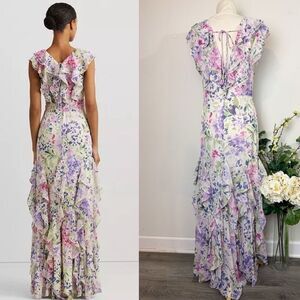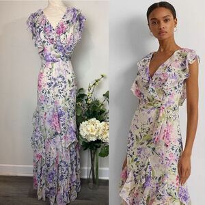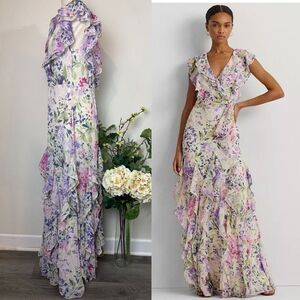 Lauren Ralph Lauren Ruffled Floral Watercolor Maxi Dress | Size 8