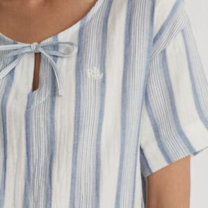 Lauren Ralph Lauren Blue White Striped Cotton Gauze Boxer Shorts PJ Pajama Set Size Small. Preloved with no flaws. Enjoy!