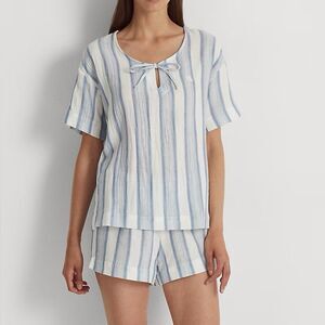 Lauren Ralph Lauren Striped Cotton Gauze Boxer PJ Set Small