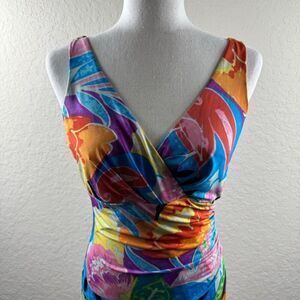 Lauren Ralph Lauren Vibrant Floral Sleeveless Ruched Bodycon Sheath Dress Sz 4