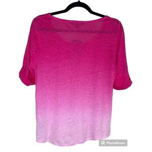 Lauren Ralph Lauren Womens 100% Linen Blouse Top Sz M Pink Ombré Short Sleeve
