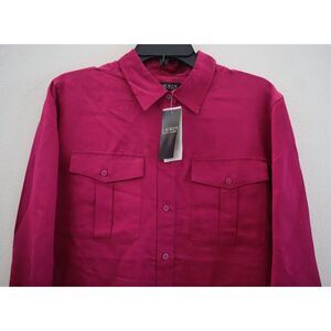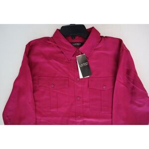 Lauren Ralph Lauren Women's Sz Large Fuchsia Berry Satin Shantung L/S Shirt