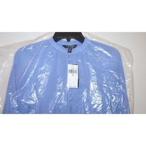 Lauren Ralph Lauren Women's Sz S Light Blue Pleated Georgette L/S Blouse $135