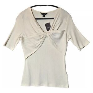 Lauren Ralph Lauren XL Mariya Twist Rib Knit Top Cream Capsule Blouse NWT
