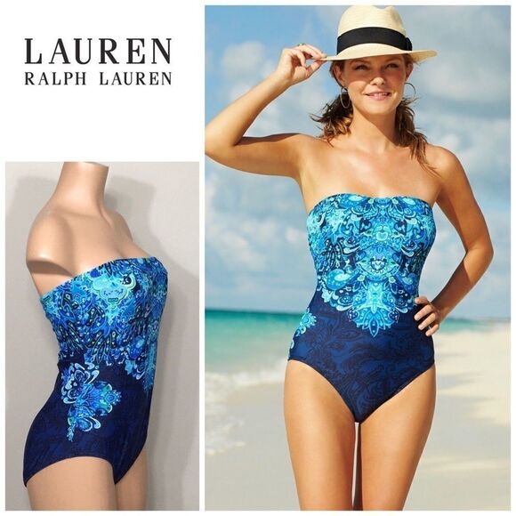 Lauren Ralph Lauren blue & green paisley swimsuit. Size 14