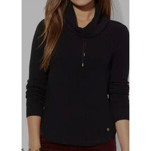 Lauren Ralph Lauren navy waffle cowl neck drawstring sweater M
