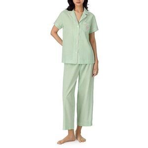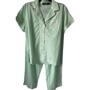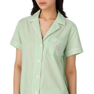 Lauren Ralph LaurenWomen's Notched-Collar Cropped Pajama Set Sz M Green Check