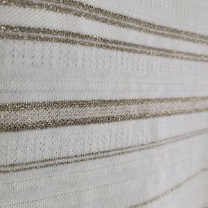 This is a long sleeve top by Lauren Ralph Lauren.  It is white with metallic gold and textured stripes.