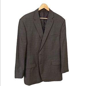 This jacket matches suit pants also listed in my closet. In great condition save for a little snag by the buttons on the right sleeve (as pictured). Single breasted, double buttoned, lots of internal pockets. Size is 46 tall.