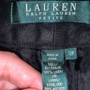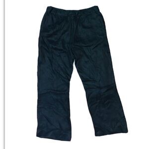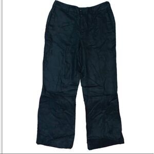 Black linen pants that are lined. They are a wide leg pant with a slash pocket at each hip. 28in inseam and in good condition