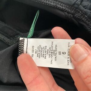 Black color. Holes to wear straps, doesn’t come with straps. Black color. Draped front.