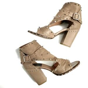 Laurence Dacade Nude Studded Leather Heels Sz 40 | Italian Designer Glam Sandals