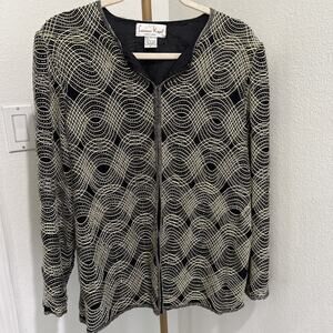Laurence Kazar 100% Silk Sequin Beaded Evening Blazer Jacket Vintage Medium