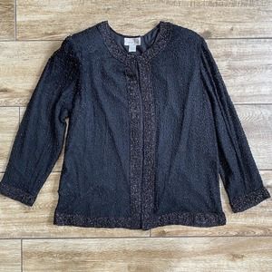 Laurence Kazar Size 1X Vintage Beaded Silk Evening Jacket Black