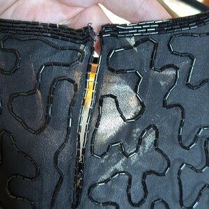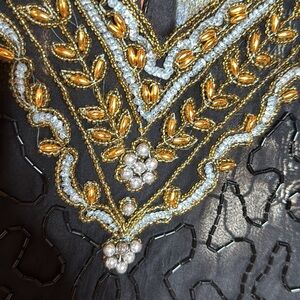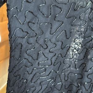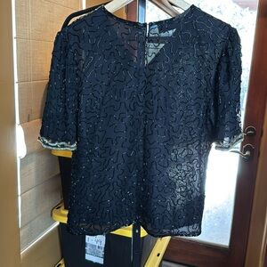 Laurence Kazar Black 100% Silk Blouse Silver Gold Sequin Beaded Size XS