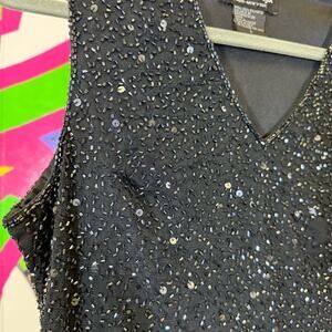 Laurence Kazar, Black Sequin Beaded Tank Top. Size Large. Excellent condition!