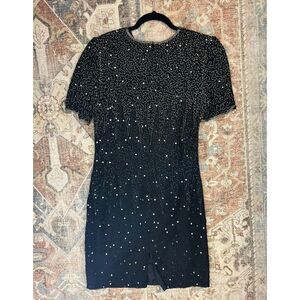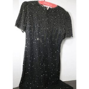 Laurence Kazar Black Sequins Silk Beaded Dress Size Medium Petite
