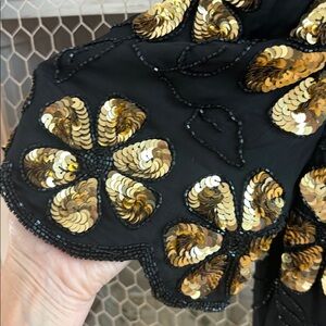 Laurence Kazar Black Silk Top with Gold Sequins Vintage XL