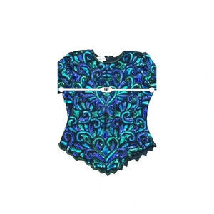 Laurence Kazar Blue 100% Polyester Floral Sequin Blouse Top Shirt Size Medium