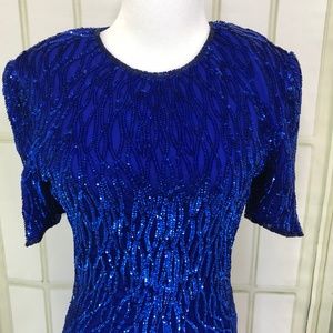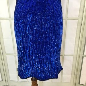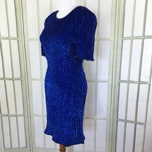 Laurence Kazar Blue Sparkling Sequins Sheath Dress Size Small