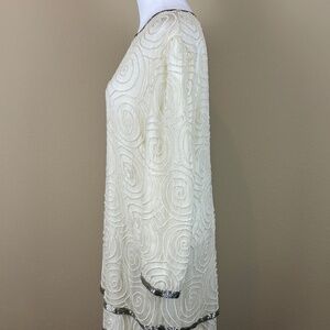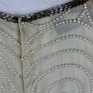 Laurence Kazar New York 100% Silk Vintage Angled Ivory Formal Beaded Midi Dress