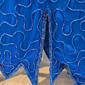 Laurence Kazar New York Beaded Silk Dress – Cobalt Blue (XL)