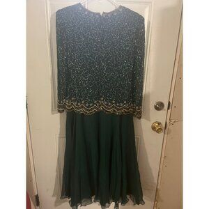 Laurence Kazar New York long sleeved sequined and beaded silk maxi gown size M