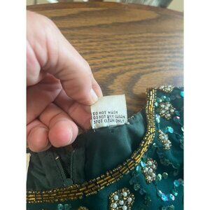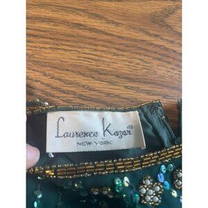 Laurence Kazar New York long sleeved sequined and beaded silk maxi gown size Medium. Zips in back and has shoulder pads. Pit to pit measures approximately 19”. Shoulder to hem measures approximately 48”. Sleeves measure approximately 22”. Beautiful beadwork and sequins. Good pre-owned condition. Vintage.