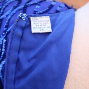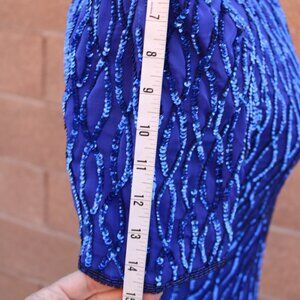Laurence Kazar Silk Sequin Beaded Mini Dress Vintage 1980-90s Cobalt Blue- Sz SP