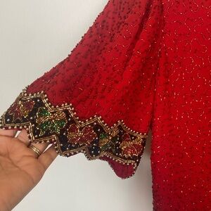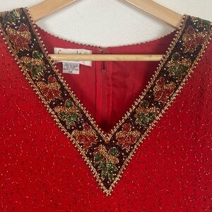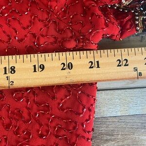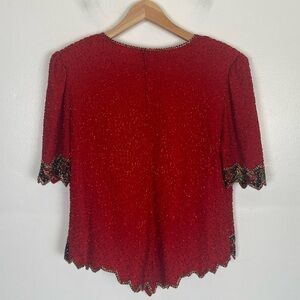 Laurence Kazar Size 1X Beaded Scalloped Short Sleeves Top V-Neck Color Red