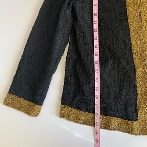 Laurence Kazar Vintage Black Gold Beaded Cocktail Silk Jacket Size Petite Small